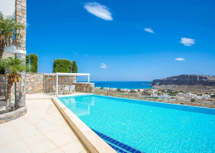 Vila Villa Karma Lindos je umístěna 2 km od Akropole v Lindu, je 2-ložnicové ubytování s terasou. Tato vila nabízí přístup k bazénům jako venkovní plavecký bazén.